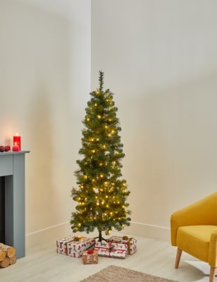 6ft Warm Pre Lit Slim Pine Christmas Tree M S